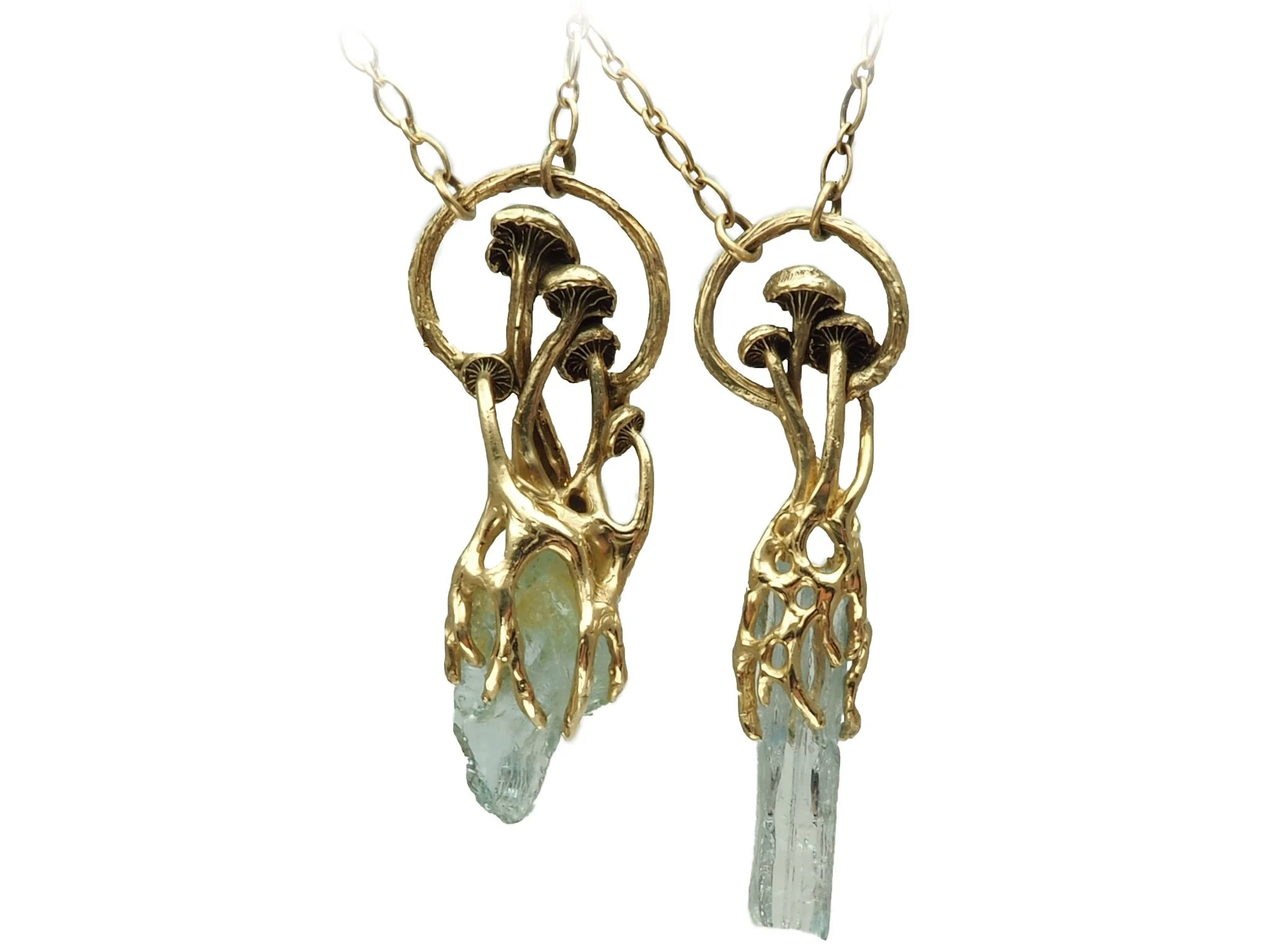 Mushroom aquamarine necklace in gold